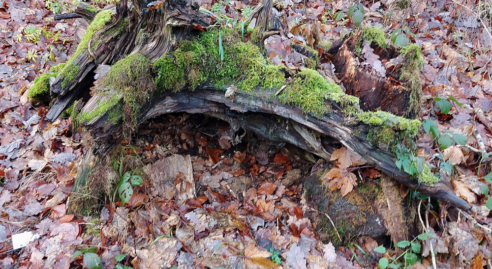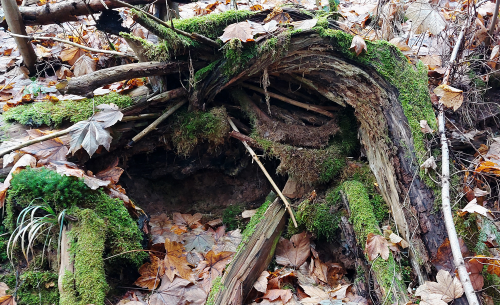 Übrigens kann man mit kleinen Kindern so einen Stubben auch mal im Sommer auf dem Spaziergang zu einem Waldgarten umbauen. Erlaubt ist, was man am Weg findet. Ich habe das einmal während einer Kinderkur im Harz erlebt, und es hat mir sehr gefallen.
