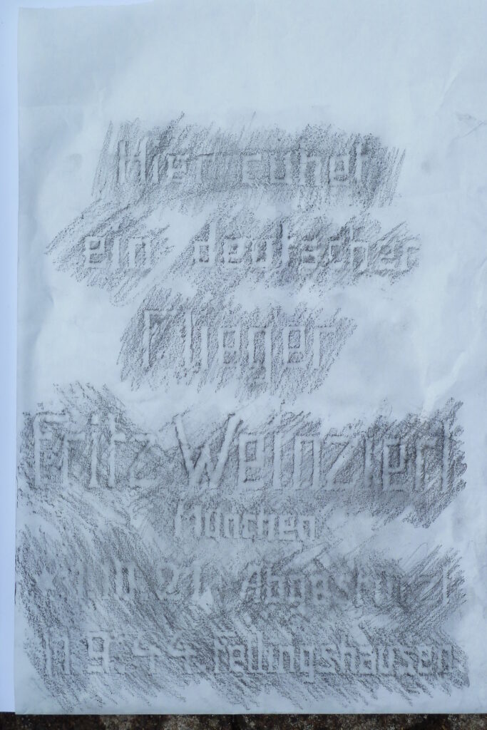 Der Grabstein ist im oberen Teil einem Flugzeugpropeller nachgebildet.
